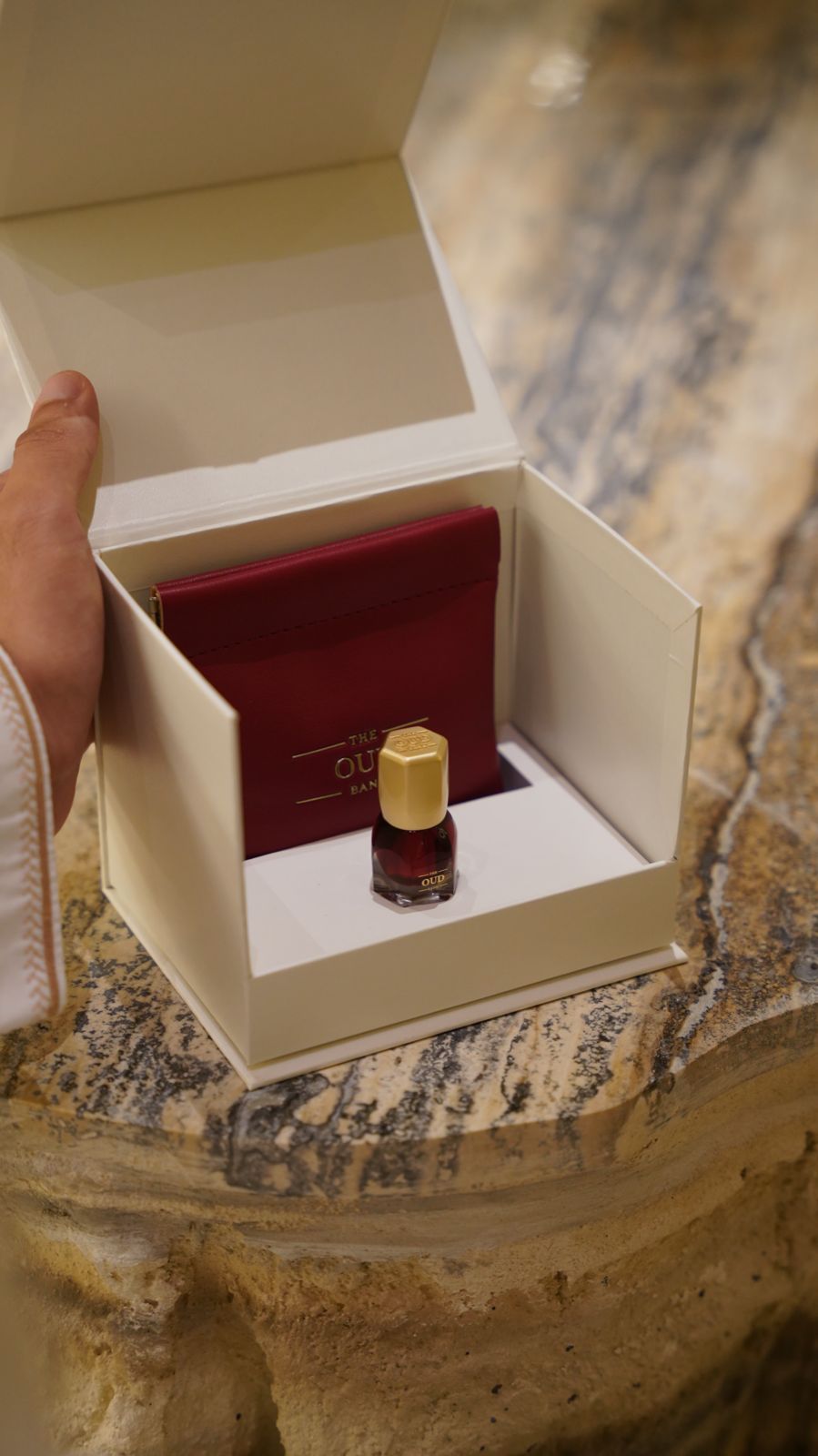 صندوق أنيق يجمع بين الفخامة والتميز، مثالي للإهداء في المناسبات الخاصة. يقدم تجربة عطرية فاخرة لعشاق العود الأصيل.